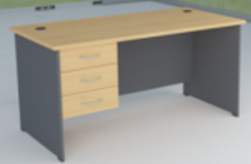*Escritorio estandar con tres gavetas fijas *Las gavetas se pueden instalar en ambos lados *Melamina dark walnut + negro *Dimensiones: 1500W x 750D x 750H