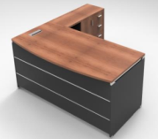 *Escritorio gerencial sobre en melamina curvo *Lateral de almacemiento independiente sin rodines *Dimensiones: 1600W x 800D x 750H