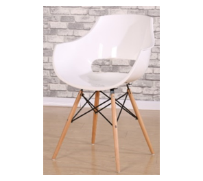 *Asiento y respald en PP blanco *Patas de madera con estructura metálica *Tamaño: 55*59*82cm
